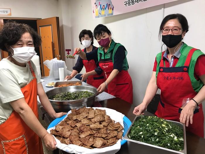 경기 수원시 권선구 구운동 새마을부녀회는 9일 닭볶음탕·섭산적구이 등 사랑의 반찬을 정성껏 만들어 지역내 취약계층 25가구에 전달했다. 사진은 이날 새마을부녀회 회원들이 반찬을 준비하고 있는 모습. (사진제공=권선구청)