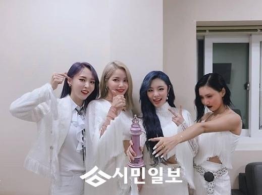 마마무 멤버들의 화사한 미소가 우승을 차지한 기쁨을 알 수 있게 한다.