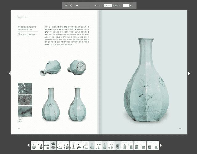 특히 e-book은 전시된 유물의 세부적인 이미지와 비교 및 참고자료를 수록한 전시도록을 디지털 자료로 전환함으로써 보다 자세한 유물정보를 소개하고 있으며, 한국과 중국의 도자문화를 엿볼 수 있는 학술논문을 수록하고 있어서 도자문화에 대한 많은 궁금증을 풀 수 있는 기회가 될 것으로 기대된다.