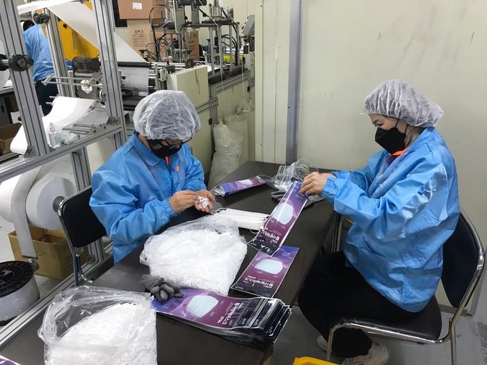 경기 부천소방서는 소속 의용소방대원 5명을 삼정동에 위치한 마스크 생산 공장에 투입해 일손을 지원하고 있다. 대원들은 이달 말까지 마스크 포장작업을 돕게 된다. 사진은 대원들이 마스크 생산 공장에서 마스크 포장을 돕고 있는 모습. (사진제공=부천소방서)