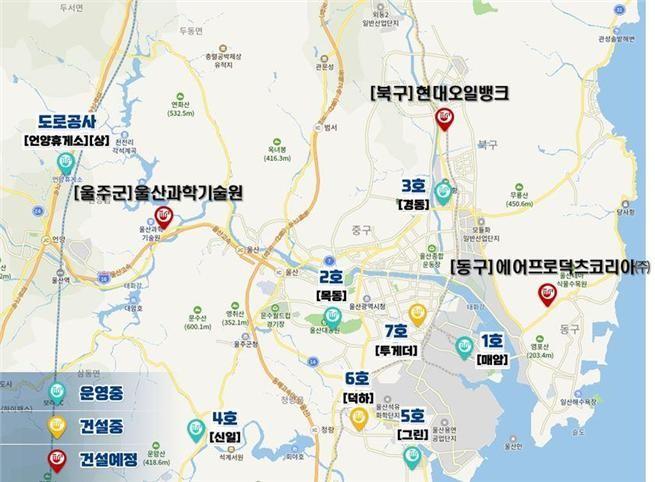 9월 말 투게더 충전소(여천오거리 인근), 덕하공영차고지 충전소(덕하공영차고지 내) 등 수소충전소 2개소가 추가 준공되고, 연말까지 3개소가 착공에 들어가는 등 내년 총 11개소의 수소충전소가 운영될 예정이다.