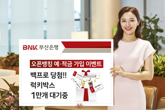 이벤트 대상은 부산은행 오픈뱅킹을 통해 다른 은행계좌에서 출금한 후, 모바일뱅킹 또는 썸뱅크 예·적금 상품을 가입하는 고객이다. 이벤트 기간 중 선착순 1만 계좌까지 럭키박스를 100% 제공한다.