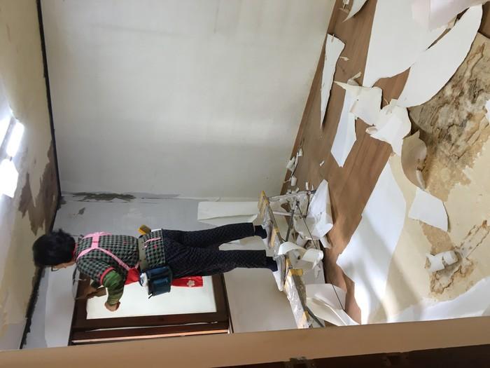 경기 이천시 연합 77동문회가 최근 저소득 홀몸노인 가구에 '사랑의 집수리 봉사'를 했다. 도배·장판 등의 비용 지원뿐만 아니라 창전동 행복마을지킴이와 함께 직접 시공까지 진행했다. 사진은 도배를 하고 있는 모습. (사진제공=이천시청)