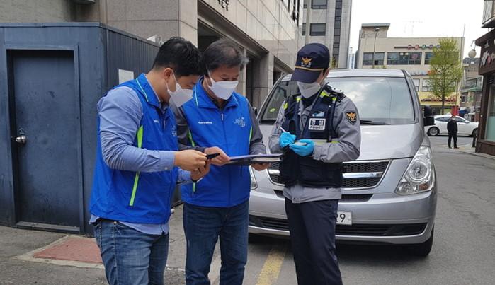 서울 영등포구가 최근 영등포경찰서와 합동해 지역내 자가격리자 559명의 거주지를 불시 현장 점검했다. 이날 ▲자가격리 장소 이탈 여부 ▲건강 상태 등을 비대면으로 점검했다. 사진은 구청 점검반과 경찰이 현장 점검 지침을 살피고 있는 모습. (사진제공=영등포구청)