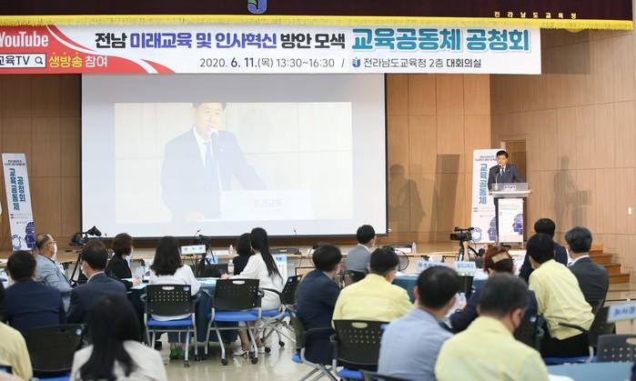 11일 전라남도교육청이 청사 2층 대회의실에서 ‘학령인구 감소와 4차 산업혁명시대 전남 미래교육 및 인사혁신 방안 모색’을 위한 교육공동체 온라인 공청회를 열고 이러한 내용의 ‘전남미래교육 청사진’을 제시했다. 사진은 공청회가 진행되고 있는 모습. (사진제공=전남교육청)