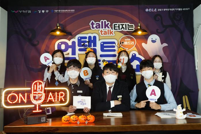 서울 강동구는 오는 18일까지 7개 중학교의 각 학생회 대표가 참여해 코로나19 상황 속 완전히 달라진 청소년들의 학교&집콕 생활을 진솔하게 나눠보는 ‘언택트 토크쇼’를 진행한다. 사진은 토크쇼 진행 모습. (사진제공=강동구청)