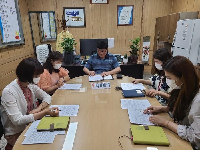 경기 동두천시 불현동 행정복지센터는 최근 위기가구 주민들의 통합 서비스 지원을 위해 내부 사례회의를 개최했다. 사진은 센터 관계자들이 회의를 진행하고 있는 모습. (사진제공=동두천시청)