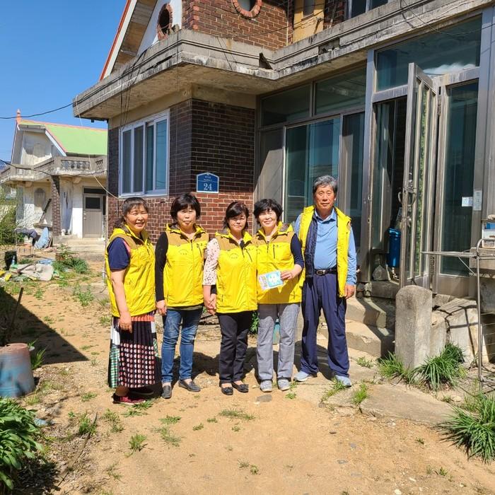 경기 연천군 장난면 지역사회보장협의체는 6일 2020년 특화사업의 일환으로 홀몸노인이 화장실에서 미끄러지는 사고를 예방하고자 ‘화장실 미끄럼방지 스티커 부착사업’을 실시했다. 사진은 협의체 위원들이 기념촬영을 하는 모습. (사진제공=연천군청)