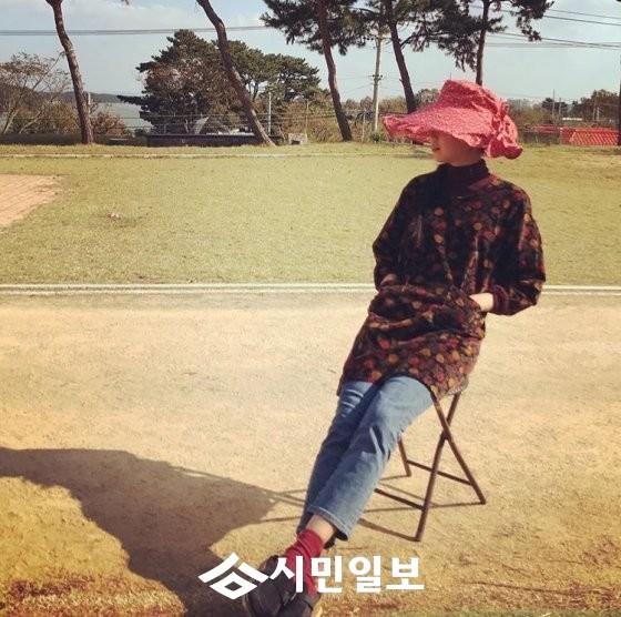 공개된 사진 속 공효진은 얼굴의 반을 가리는 챙이 넓은 모자를 쓴 채 의자에 걸터앉아있다.
