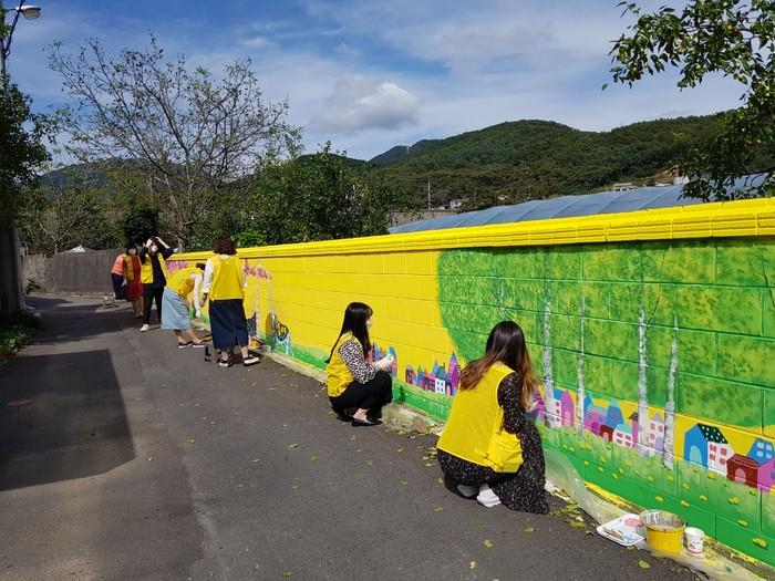 경기 남양주보건소 동부치매안심센터는 지난 19~24일 치매안심마을인 수동면 운수1리에서 환경개선사업의 일환으로 '치매 친화적 마을벽화 그리기'를 진행했다. 이번 벽화는 노인들에게 새로운 추억을 심어주고, 마을분위기를 밝고 쾌적하게 꾸미고자 추진됐다. 사진은 마을 담장에 벽화를 그리고 있는 모습. (사진제공=남양주시청)