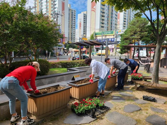 경기 구리시 수택3동은 최근 가을을 맞이해 주민과 함께 수택3동 주요 거리 화단과 화분에 메리골드·페츄니아 등 가을철 초화류 5000본을 심었다. 사진은 이날 참여한 봉사자들이 가을꽃을 식재하고 있는 모습. (사진제공=구리시청)