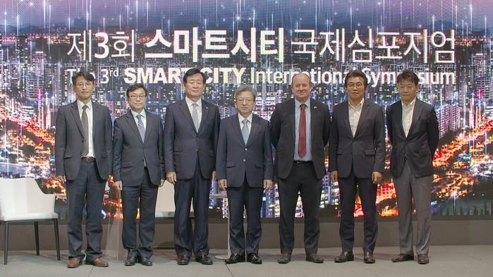 인천경제자유구역청은 최근 이틀간 포스트 코로나 시대의 스마트시티 발전 방향을 모색한 ‘제3회 스마트시티 국제심포지엄(Resilience in Smart Cities)’을 개최했다. 사진은 스마트시티 국제심포지엄의 참석자들이 기념촬영을 하고 있는 모습. (사진제공=인천경제자유구역청)