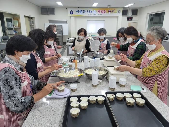 생활개선경기광주시연합회는 최근 장애인 시설인 '한사랑마을'과 어린이·청소년 전문 안심식당인 '소다미'에 제과제빵 실습 교육 후 습득한 재능을 기부하고 직접 만든 빵 400여개를 전달했다. 사진은 연합회 회원들이 빵을 만들고 있는 모습. (사진제공=광주시청)