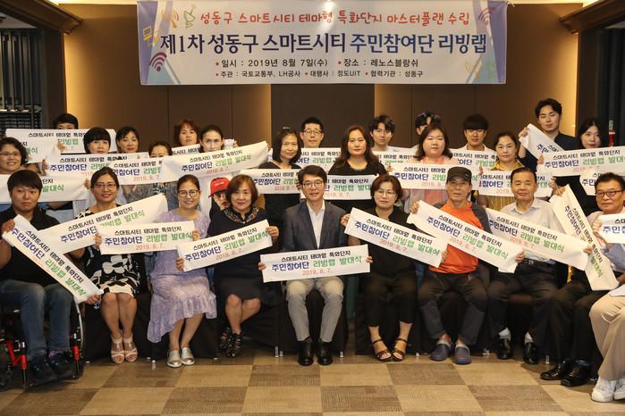 ▲ 왕십리 스마트 트랜스시티 주민참여단 발대식에서 주민들과 정원오 구청장(앞줄 가운데)이 기념촬영을 하는 모습. (사진제공=성동구청) |