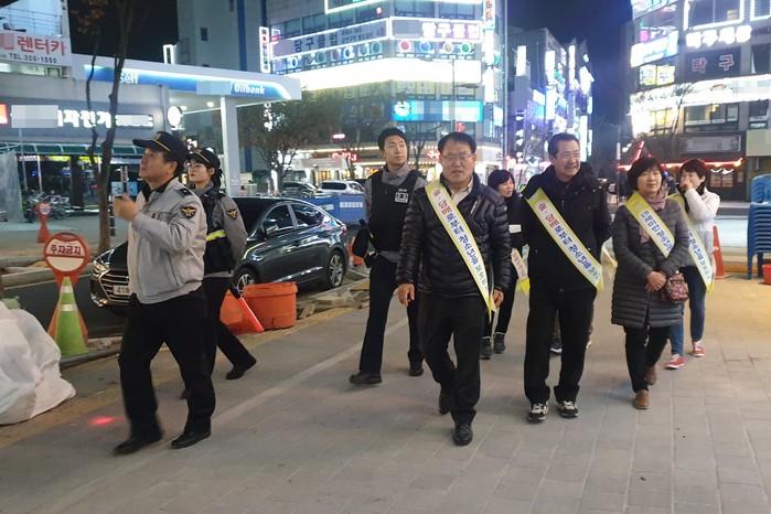 경기 수원시 장안구 정자3동은 16일 통장협의회, 방범기동대, 노송지구대 등 30여명이 참가한 가운데 정자3동 중심상가와 천천동 먹자골목 일원에서 청소년 선도·보호를 위한 홍보 캠페인 및 야간방범 순찰을 실시했다. 사진은 참여자들이 순찰을 하고 있는 모습. (사진제공=장안구청)