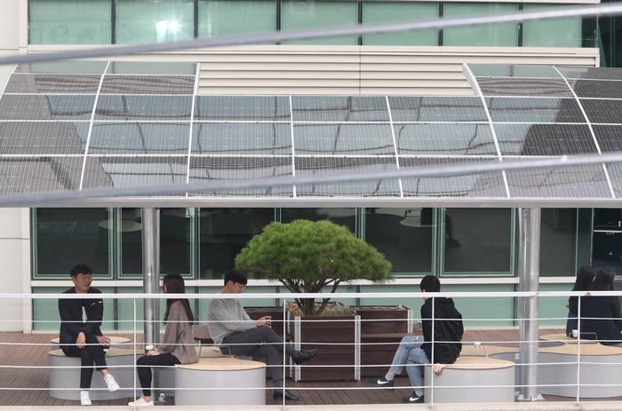 ▲ 태양광 발전시설이 설치된 구청사 2층 주민쉼터. (사진제공=관악구청) |