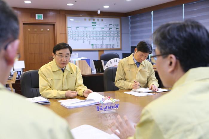 서울 도봉구는 지난 28일 신종코로나바이러스 감염증 대비 긴급 대책회의를 개최하고 긴급 대응 태세에 돌입했다. 구는 보건소 6층에 대응 상황실을 운영하고 24시간 근무체계를 유지하기로 했다. 사진은 이동진 구청장(왼쪽)과 관계자들이 회의하는 모습. (사진제공=도봉구청)