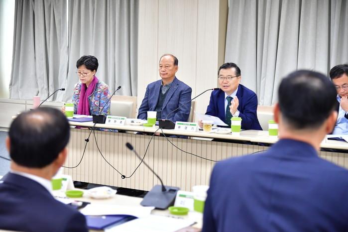 서울 중랑구는 최근 구청 기획상황실에서 ‘2020년 중랑구와 함께하는 서울도시농업박람회 추진위원회 위촉식’을 개최했다. 추진위원회는 도시농업전문가, 농업인, 관계 공무원 등 총 11명으로 구성됐다. 사진은 위촉식에 참석한 류경기 구청장이 발언하는 모습. (사진제공=중랑구청)