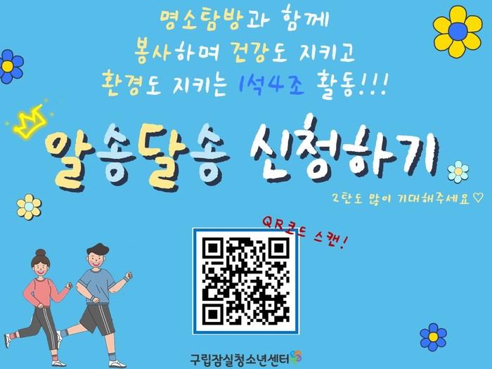 22일 구에 따르면 구립잠실청소년센터에서 운영하는 ‘언택트 송파탐방 알송달송’은 ‘알면좋은 송파명소 달려보자 송파명소’라는 의미를 담아 송파둘레길, 석촌호수 공원 등 지역내 명소를 즐기는 동시에 플로깅을 통해 환경정화활동을 하는 프로그램이다.