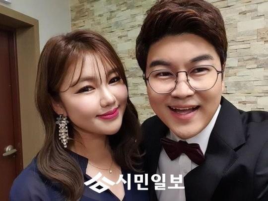 공개된 사진 속 송가인은 가수 박구윤과 함께 미소 짓고 있다.