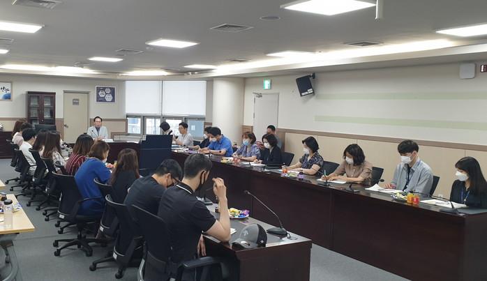 경기 안양시청소년재단 기길운 대표이사가 재단 산하 시설의 방역 상황을 점검하고, 직원의 고충과 애로를 청취하기 위한 찾아가는 간담회를 진행했다. 사진은 간담회가 진행되고 있는 모습. (사진제공=안양시청소년재단)