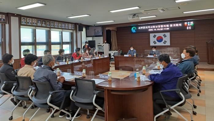 충남 홍성군 서부면지역사회보장협의체는 최근 정기회의를 개최해 그동안 발굴한 복지 소외계층 62가구의 생계비 및 교육비 지원사업 등 복지사각지대 대상자들을 위한 맞춤형 복지지원을 위한 의견을 모았다. 사진은 이날 위원들이 회의를 하고 있는 모습. (사진제공=홍성군청)