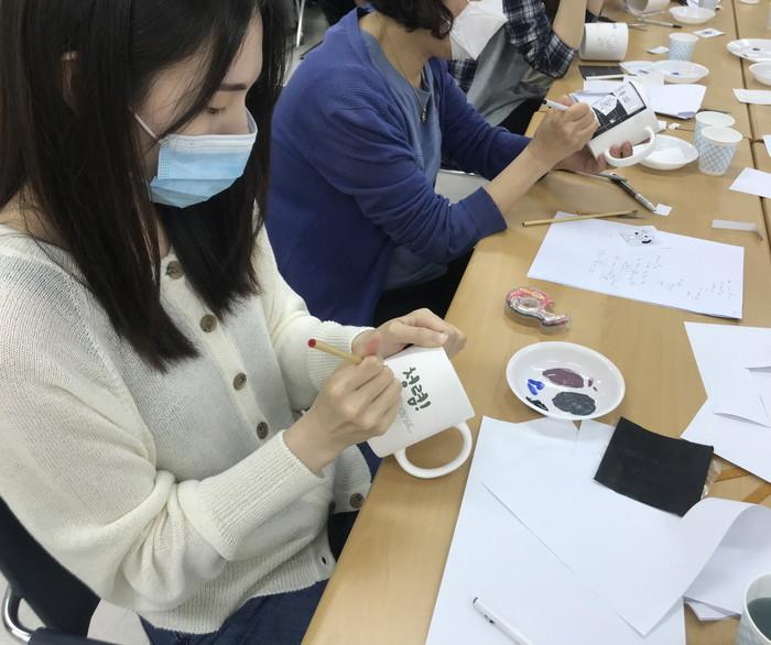 서울 구로구가 직원들의 생활 속 청렴의지 향상을 위해 ‘청렴 머그컵 만들기’ 체험행사를 개최했다. 사진은 직접 정한 청렴문구를 머그컵에 적으며 머그컵을 만들고 있는 직원들의 모습. (사진제공=구로구청)