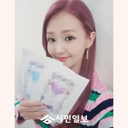 보라색 헤어로 염색한 오정연의 화사한 미모가 시선을 압도한다.