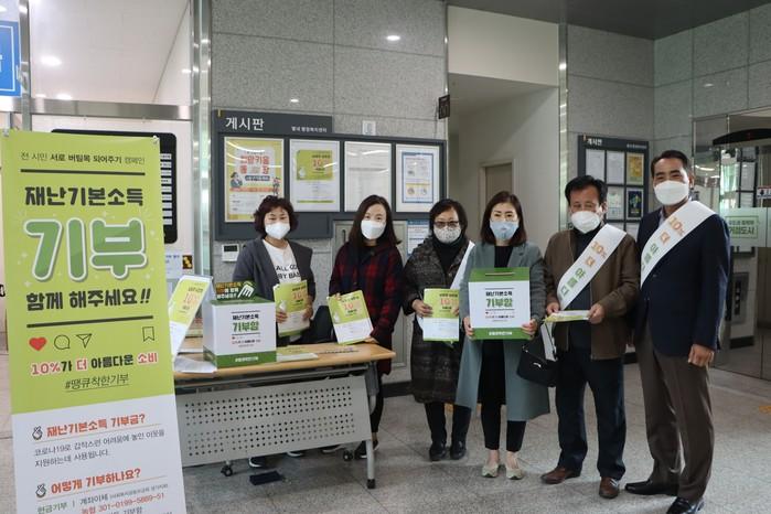 경기 남양주시 별내행정복지센터 주민자치위원회 및 통장협의회는 코로나19로 어려움을 겪고 있는 취약계층에게 경기도 재난기본소득의 10%를 기부하는 ‘착한 기부운동 Thank You’ 캠페인을 전개하고 있다. 사진은 관계자들이 기념촬영을 하는 모습. (사진제공=남양주시청)