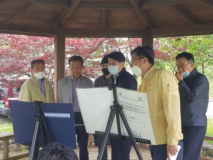 경기 김포시는 25일 국지성 집중호우 등 다가오는 여름철 자연재난 예방을 위해 경기도 자연재난부서와 합동으로 봉성 자연재해 위험지구와 운양배수펌프장 시설 등을 점검했다. 사진은 관계자들이 시설 현황 등을 살피고 있는 모습. (사진제공=김포시청)