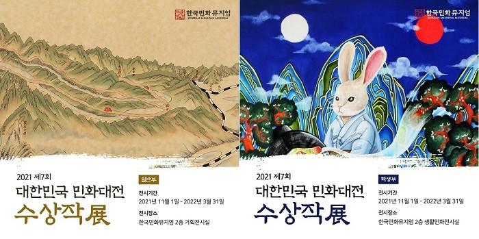 | ▲ 제7회 대한민국민화대전 수상작 특별전 포스터 / 사진 좌측 일반부 대상 수상작, 우측 학생부 대상 수상작 / 한국민화뮤지엄 제공 |