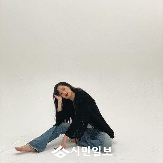 공개된 사진 속 이주연은 허리까지 오는 긴 머리를 늘어뜨린 채 살짝 손으로 머리를 짚고 있다