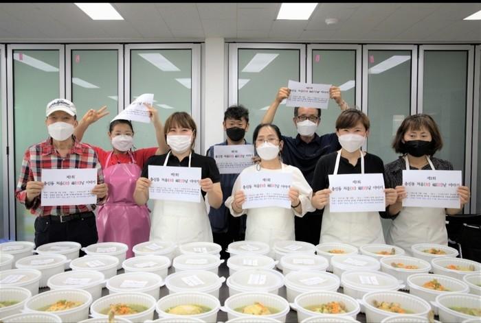 서울 종로구가 최근 지역내 소외된 노인들의 건강한 여름나기를 돕기 위한 나눔 활동을 활발히 추진하고 있다. 숭인2동은 저소득 노인들에 ‘복날 맞이 보양식 세트’ 및 취약계층에 ‘쿨쿨(cool cool) 시원 키트’를 지원했으며, 종로5·6가동에서는 초복을 맞아 보양식 나눔 활동을 진행했다. 사진은 종로5·6가동 삼계탕 나눔에 참여한 봉사자들이 기념촬영을 하는 모습. (사진제공=종로구청)