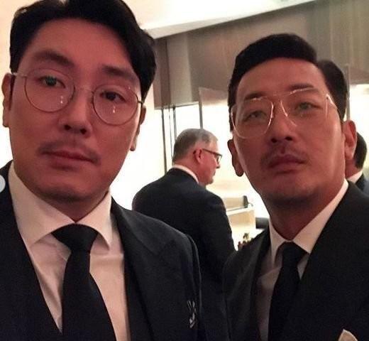 사진 속 하정우와 조진웅은 말끔한 슈트를 입고 나란히 서서 포즈를 취하고 있다.