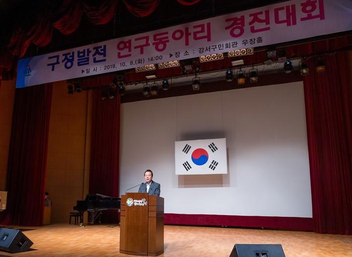 서울 강서구는 최근 강서구민회관에서 직원 600여명이 참석한 가운데 ‘구정발전 연구동아리 경진대회’를 개최했다. 이날 과제 선정, 발표력, 연구 성과 등의 심사를 거쳐 최종 순위가 가려졌다. 사진은 노현송 구청장이 인사말을 하는 모습. (사진제공=강서구청)