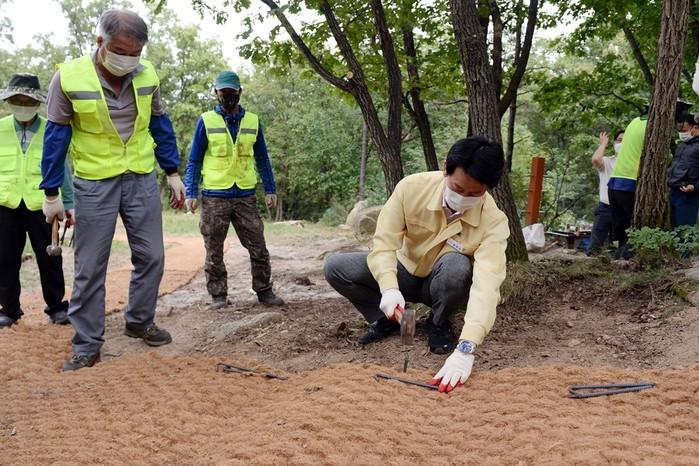 최근 황범순 경기 의정부시 부시장은 시민들의 행복하고 안전한 산행을 위해 그린시티 의정부, 행복한 숲길 만들기, 수목병해충 방제사업 프로젝트의 추진현장을 면밀히 점검했다. 사진은 황 부시장이 관계자들과 숲길을 점검하는 모습. (사진제공=의정부시청)