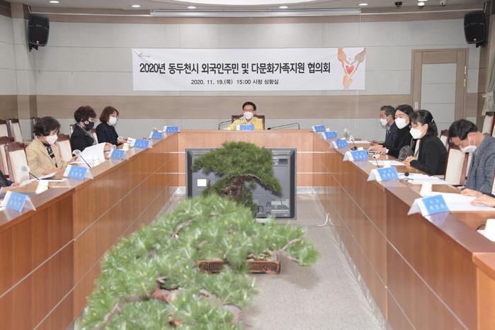경기 동두천시가 19일 ‘2020년 동두천시 외국인주민 및 다문화가족지원 협의회’를 개최했다. 이날 회의에서는 신규위원 위촉식·2020년 다문화가족 지원사업 추진성과 보고 등을 진행했으며, 다문화가족 사업에 대한 질의응답과 유관기관 간 협력방안 등 의견을 나눴다. 사진은 회의가 진행되고 있는 모습. (사진제공=동두천시청)