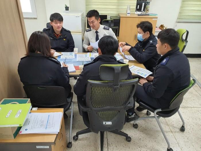 인천 강화소방서는 5일 겨울철 대형화재 방지 및 인명 피해 최소화를 위해 추진 중인 ‘겨울철 소방안전대책’ 목표달성을 위한 중간성과 보고회를 개최했다. 이날 화재 초기 총력 대응체계 확립 등에 대한 논의를 했다. 사진은 회의 진행 모습. (사진제공=강화소방서)
