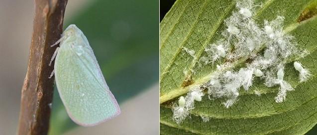 | (좌)미국선녀벌레 성충 (우)갈색날개매미충(약충) / 영암군 제공 |