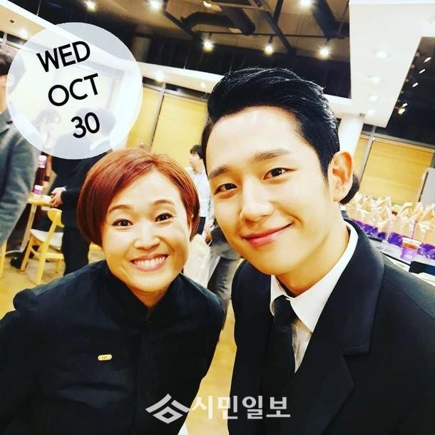 송은이는 자신의 인스타그램에 "우리 해인이 여전히 빛나는 구나 #2019대한민국대중문화예술상 #문화부장관상 너무 축하해"라는 글과 함께 한 장의 사진을 게재했다.