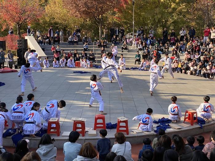 경기 수원시 장안구 정자3동 단체장협의회가 주최하고 마을만들기추진위원회가 주관한 '제9회 정자마을 달빛문화제'가 최근 정자공원 야외공연장에서 성황리에 개최됐다. 사진은 행사 참여자들이 태권도 공연을 선보이는 모습. (사진제공=장안구청)