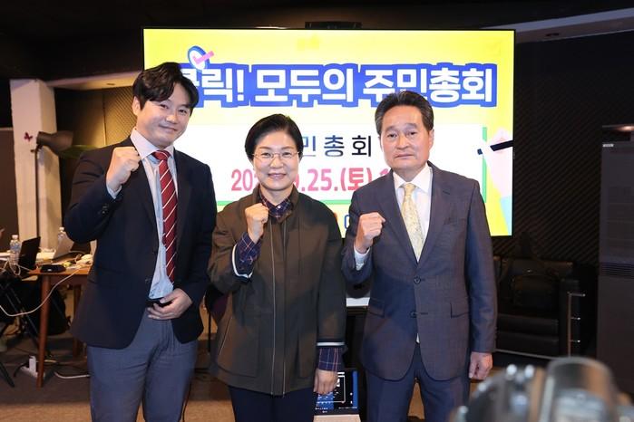은평구는 지난 25일 참여예산 주민총회·청소년총회를 성황리에 마쳤다. 이번 주민총회·청소년총회에는 사전신청을 한 주민·청소년 100여명이 영상으로 참여해 참여예산 투표대상 정책과제 등에 대한 다양한 의견을 주고받으며 토론을 진행했다. 사진은 이날 김미경 구청장(가운데)과 관계자들이 기념촬영을 하는 모습. (사진제공=은평구청)