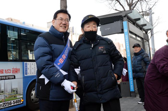 | ▲ 지난해 진행된 ''안전보행로 캠페인'에 참여한 유덕열 구청장(왼쪽). (사진제공=동대문구청) |