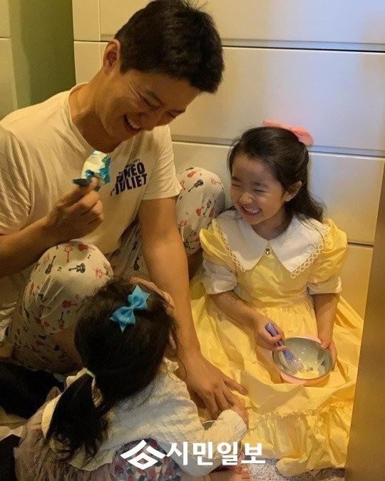 공개된 사진 속 인교진은 딸 하은, 소은 양과 함께 아이스크림을 먹고 있는 모습이 담겼다.