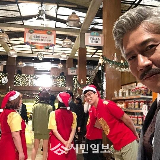 공개된 사진 속 박호산은 tvN 드라마 '쌉니다 천리마마트' 주 배경인 천리마마트에서 배우 이규현과 크리스마스 분위기를 물씬 뽐내 시선을 사로잡았다.