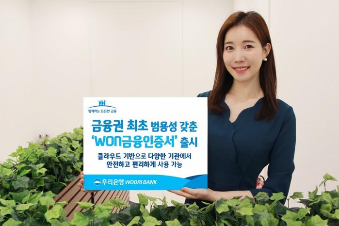 우리은행 관계자는 "이번에 출시한 ‘WON금융인증서’는 클라우드 기반의 범용성을 갖춘 금융권 최초의 금융인증서로 공공기관을 포함한 다양한 기관에서 안전하고 편리하게 이용 가능하다"며 "빠르고 편한 금융인증서 제공으로 고객의 이용 만족도를 높여 나갈 것"이라고 말했다.