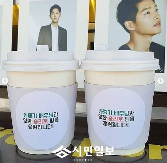 공개된 사진에는 "송중기 배우님과 영화 '승리호' 배우, 스텝분들을 응원합니다!! 콘텐츠지음 한석원"이라는 문구가 적혀있어 눈길을 끈다.