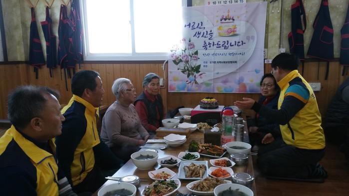 경기 이천시 모가면 지역사회보장협의체는 최근 이달 생일을 맞은 지역내 홀몸노인 4명을 초대해 생일잔치를 했다. 이날 '온천식당'에서 생일상을, '떡보의 하루'에서 떡케이크를, '주만장로교회'에서 축하선물을 협찬했다. 사진은 생일잔치 진행 모습. (사진제공=이천시청)