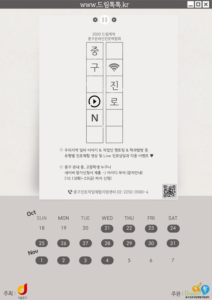 [시민일보 = 여영준 기자] 서울 중구(구청장 서양호)가 21일~오는 11월4일 2020 중구진로박람회 '중구ON진로'를 온라인으로 개최한다.