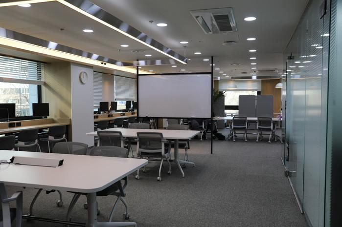 bhc는 자율좌석 외에도 대형모니터를 이용할 수 있는 집중근무석, 소규모 회의가 가능한 업무협업석, 기존 가맹점주들과 예비창업자 방문 시 편안한 상담을 위한 1대1 상담석 등으로 구성해 업무의 효율성을 높였다.